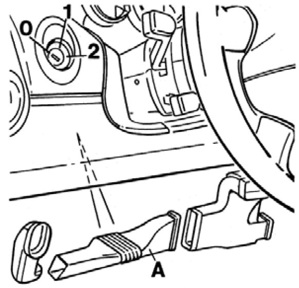 1. Move ignition switch to position 0 (same position as lock barrel).