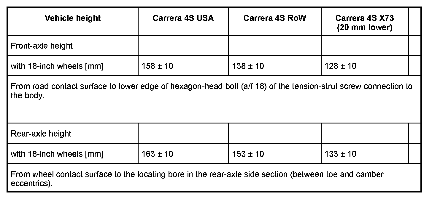 ^ The 911 Carrera 4S, up to model year 2004, is delivered with just one running gear tuning. As of model year 2004, the X73 running gear (20 mm lower) is available as an option.