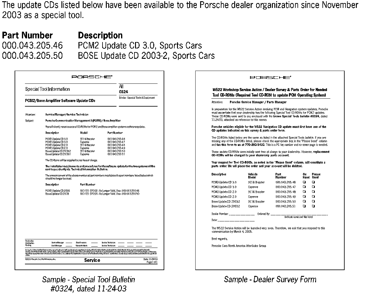 This is to inform you of a voluntary Workshop Service Action on a certain range of 2003 and 2004 model year 911 C/C4/4S/Targa/Cabrio/C4 Cabrio/4S Cabrio (996) vehicles. The PCM2 system software needs to be updated to software version "3.0" for using the new navigation CDs.
