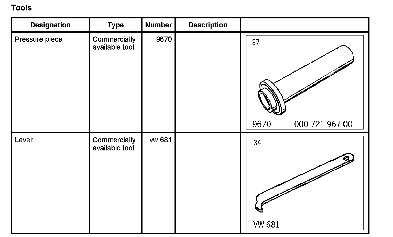 2. Lever out the sealing ring using the lever vw 681.