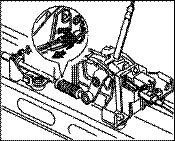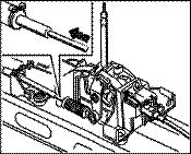 4. Push selector lever cable all the way back (see enlarged view), shifting the transmission into parking position.