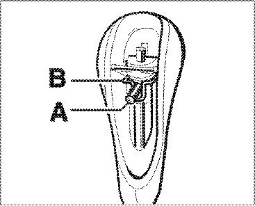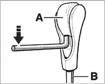 1. Lever the locking button -A- off with a suitable tool or finger. The locking button must be pressed so that the tool can be inserted between the selector lever -B- and locking button.