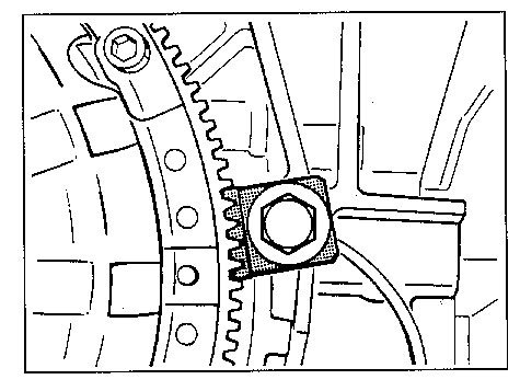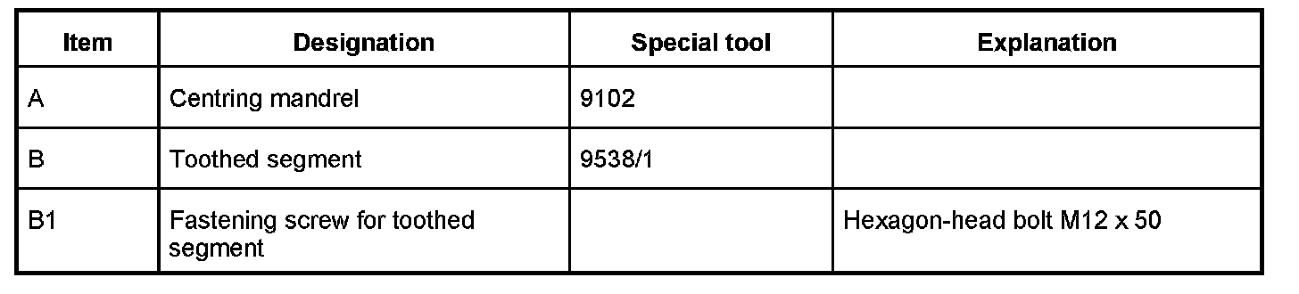 2. Fasten toothed segment (special tool 9538/1) on the crankcase half (cylinder bank 1 - 3) with hexagon-head bolt M12 x 50.