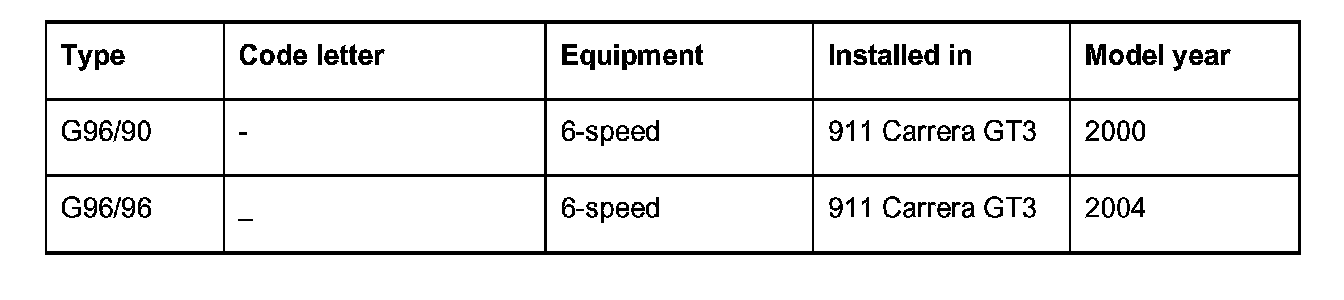 Technical data - GT3Six-speed manual transmission G96/90 and G96/96