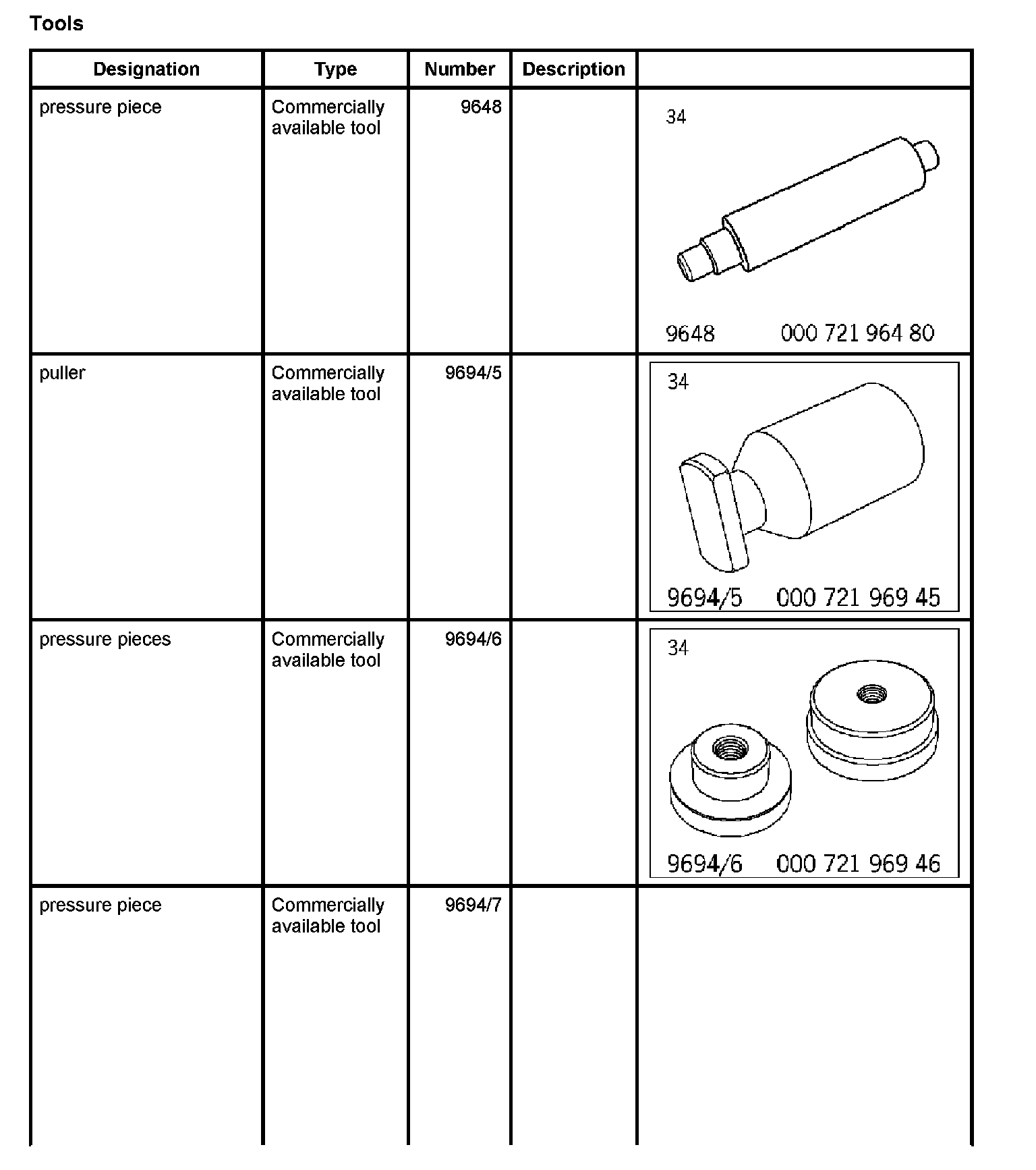 1. Tap outer bearing ring (no. 12 in overview) in as far as the mounting face using special tool pressure pieces 9694/6 and pull-in tool and extractor p 254.