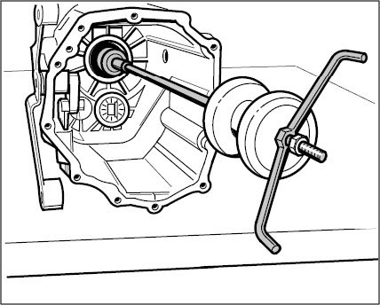1. Tap outer bearing ring (no. 13 in overview) in as far as the mounting face using special tool pressure pieces 9694/6 and pull-in tool and extractor p 254.