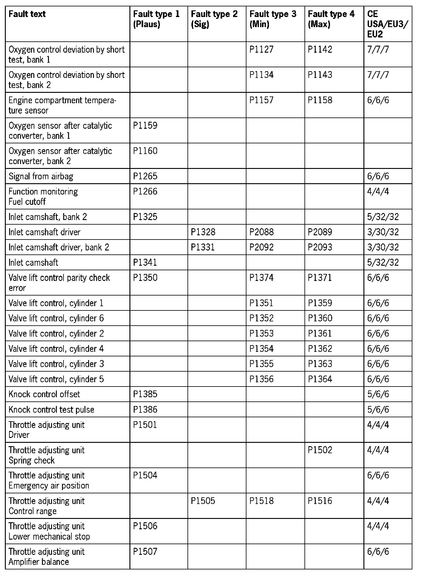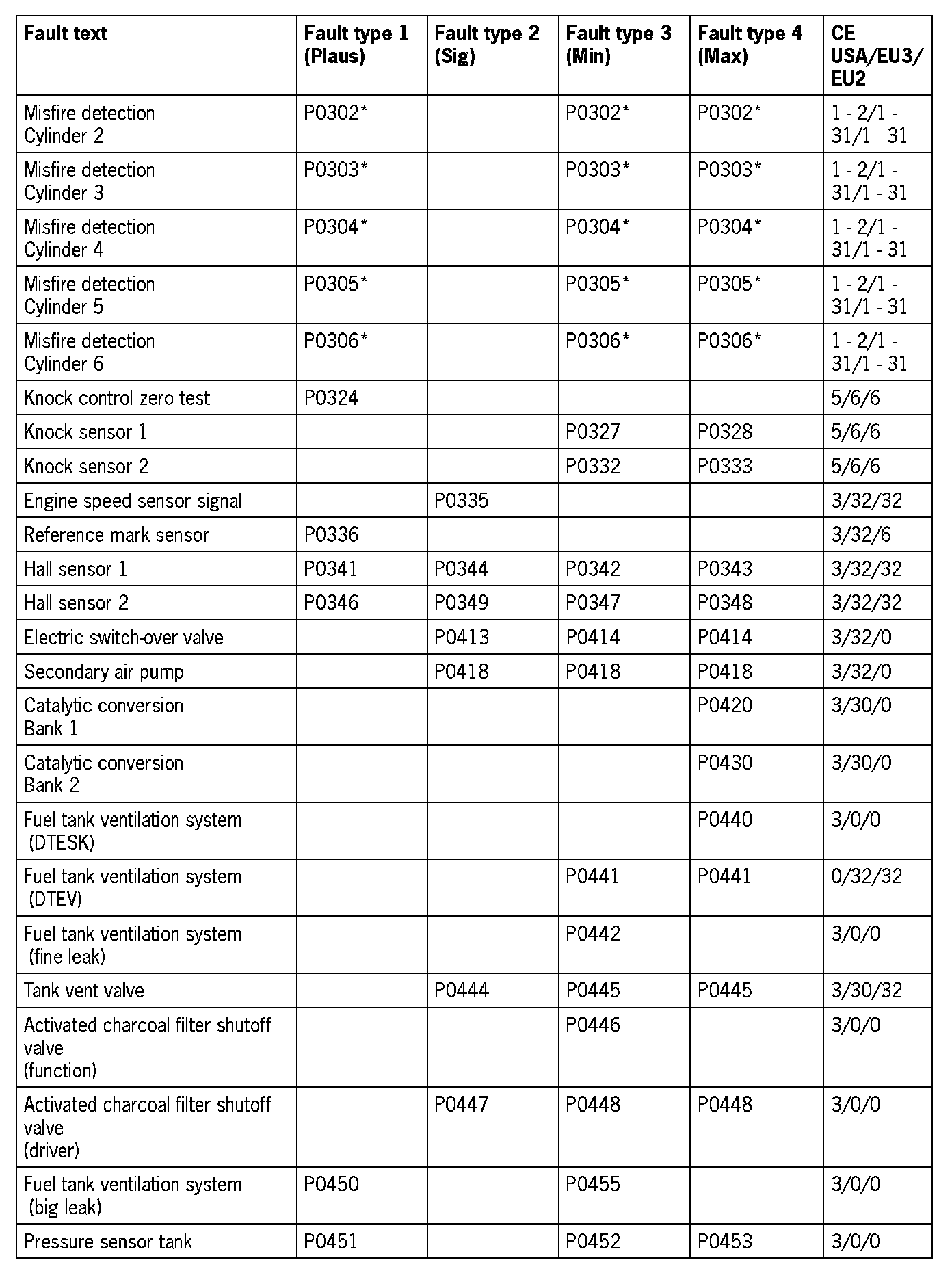 - The turbo versions for model year 2001 and as of model year 2002 have separate fault code tables which differ in some respects from this table.