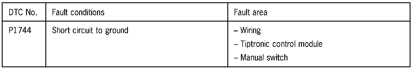 2 Check wire from the Tiptronic control module to the manual switch for short circuit to ground.
