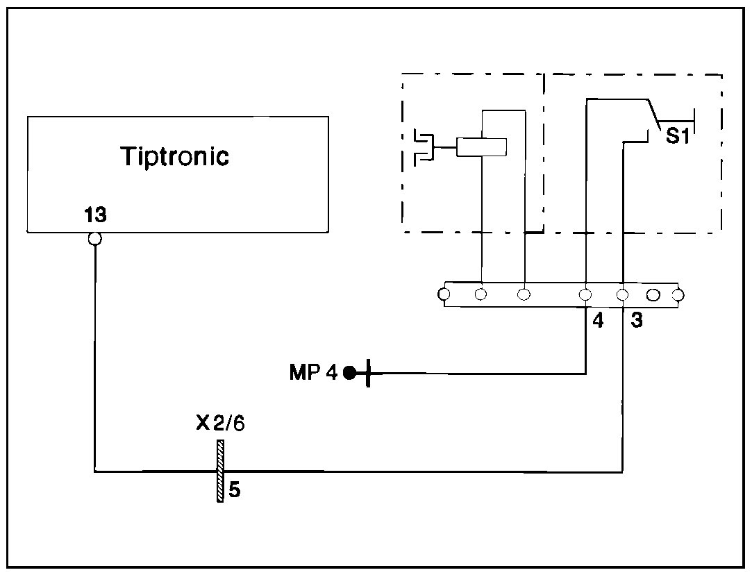 The manual program switch connects ground potential to the Tiptronic control module in the manual shift gate, which releases manual touch shifting. A manual program is not possible if the transmission control unit detects a short circuit to ground.