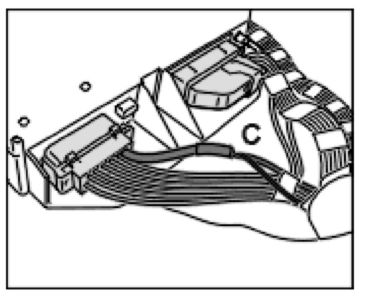 13. Lay the red/brown lead -C- from the service wiring harness to the plug (black) of the alarm system control module, crimp the lead to the red/brown lead, pin B8 - wiring diagram, external loads, terminal 30 - and insulate the lead. The leads must be watertight - Tools