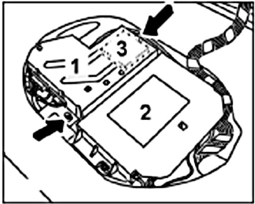18. Insert the tilt sensor -3- into the cover -1- and screw the cover tight to the floorpan using the fastening screws -arrow-.