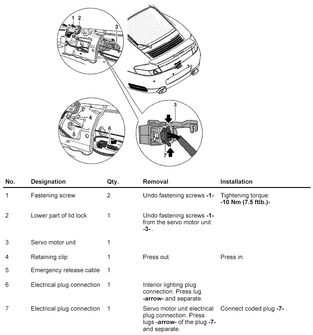 Removing And Installing Lower Part Of Lid Lock At Rear