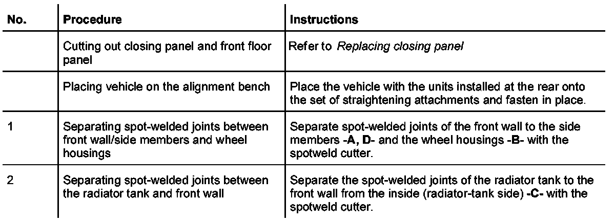- All straightening work on the body in this area must have been completed before the damaged parts are removed.