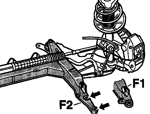 - The previous front-axle cross member -F1-, with one fastening screw securing it to the body (per side) is still available as a spare part.