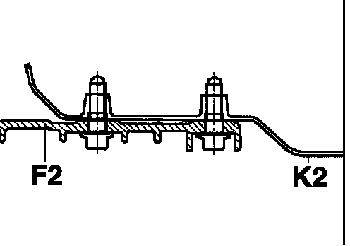 - Do not install front-axle cross members with one fastening screw (F1) in vehicles with two body mounting points (K2)!