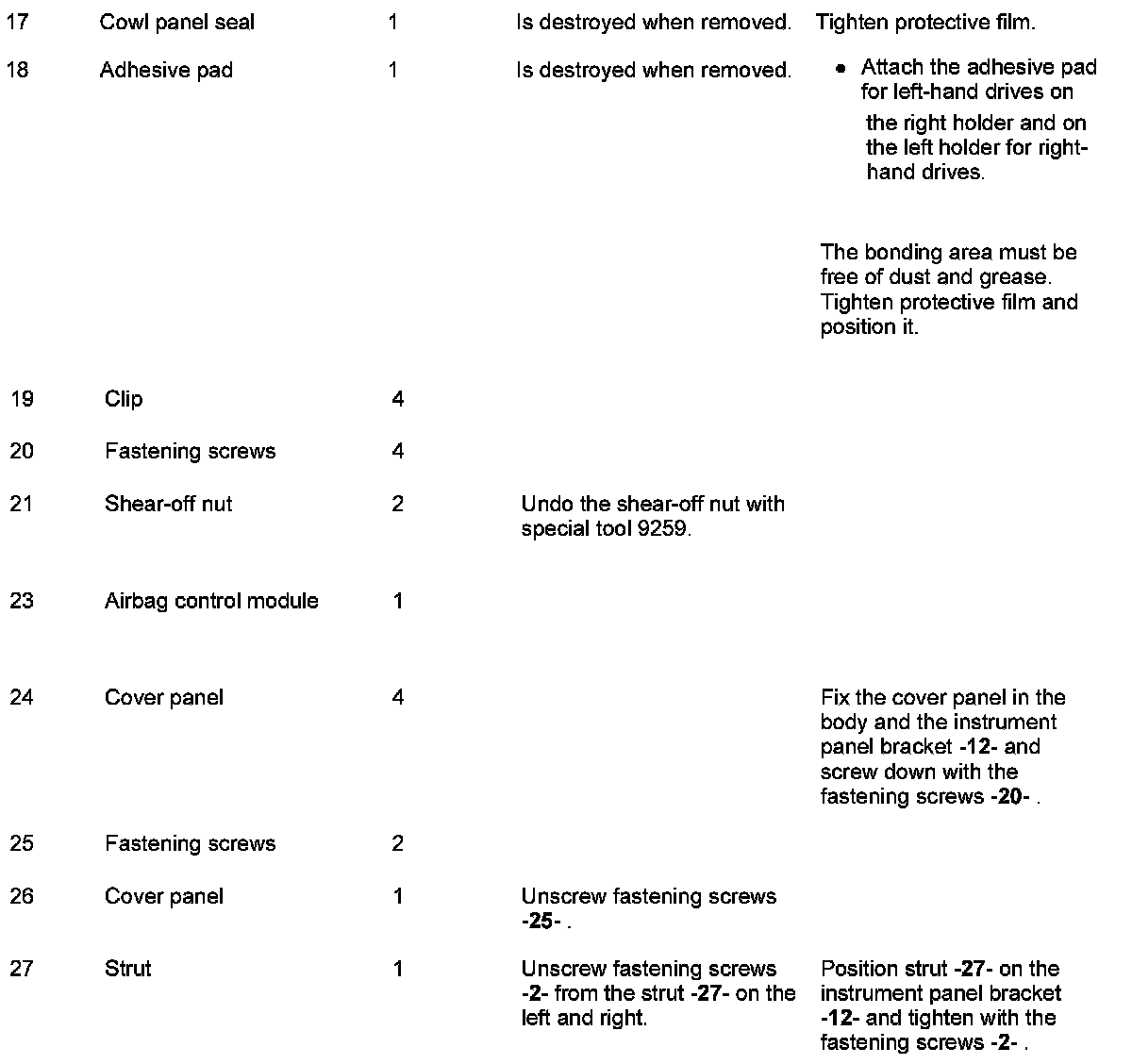 Removing And Installing The Instrument Panel And Instrument Panel Bracket - As Of Model Year 2003