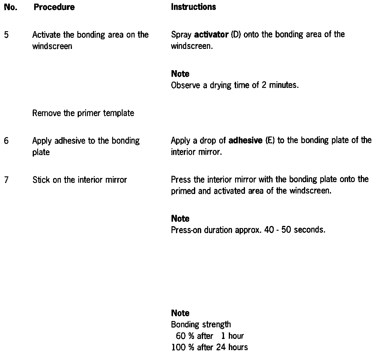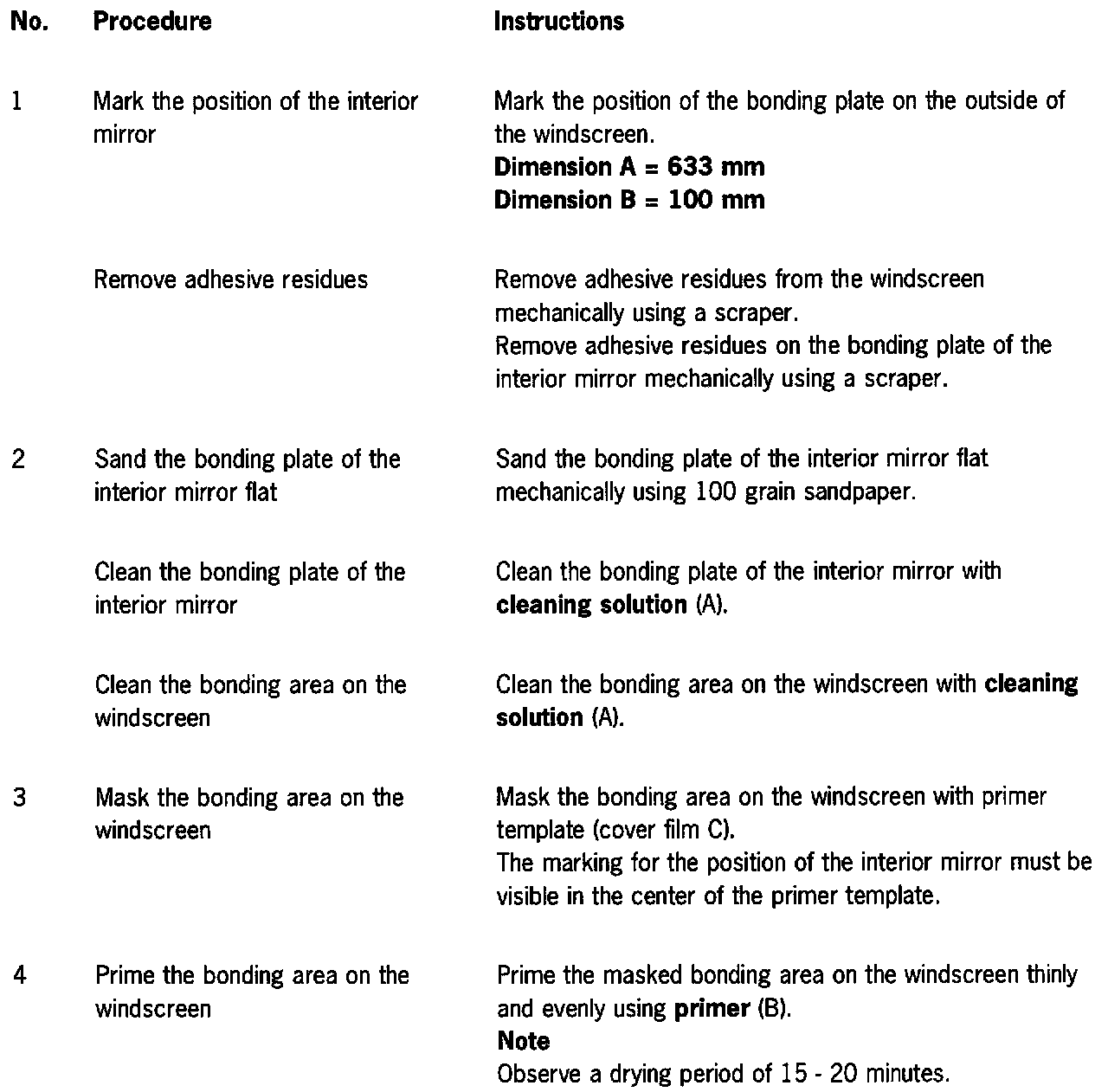 The following materials are required to bond on the complete interior mirror: