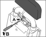 Insert a screwdriver into the hole in the module and press it against the top edge of the pawl. Press the screwdriver to the right -arrow A- and hold it while pressing up in direction of arrow -arrow B-. The roll-over protection system is released.