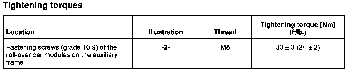 - The roll-over bar modules must be replaced in the event of visible damage or pressure marks.