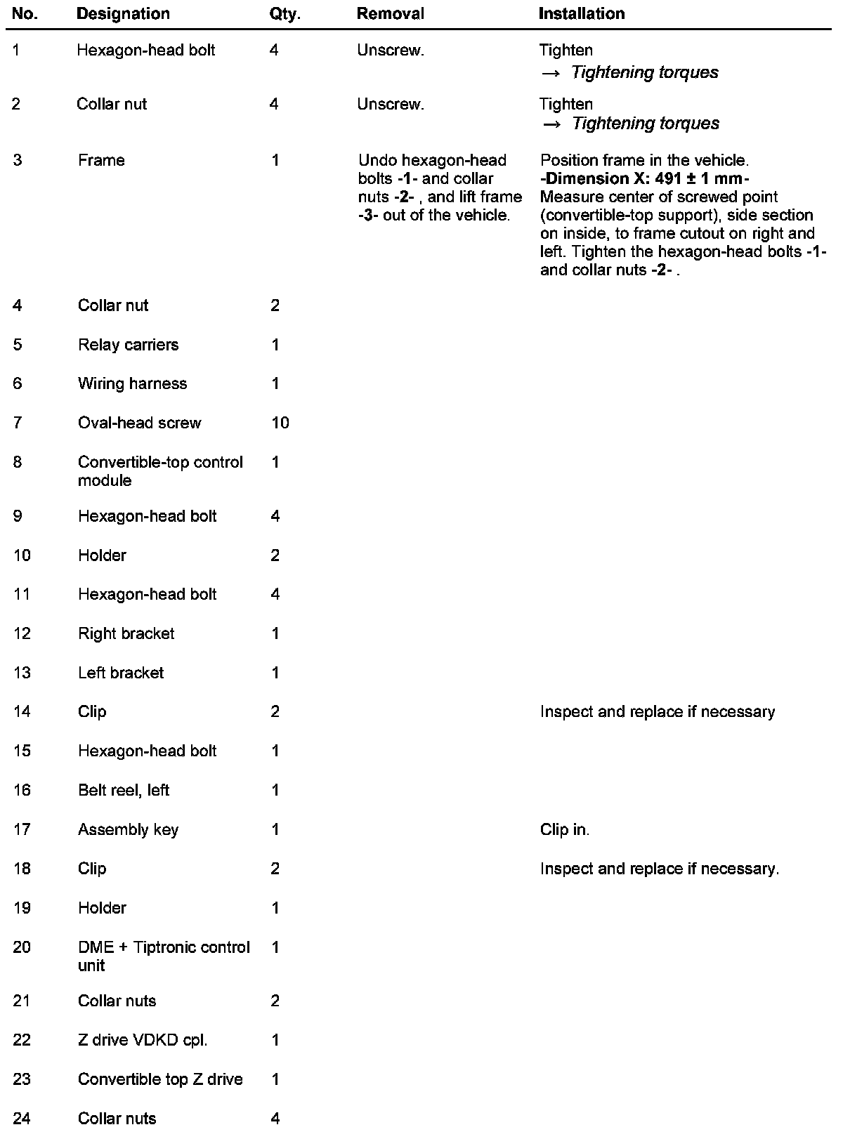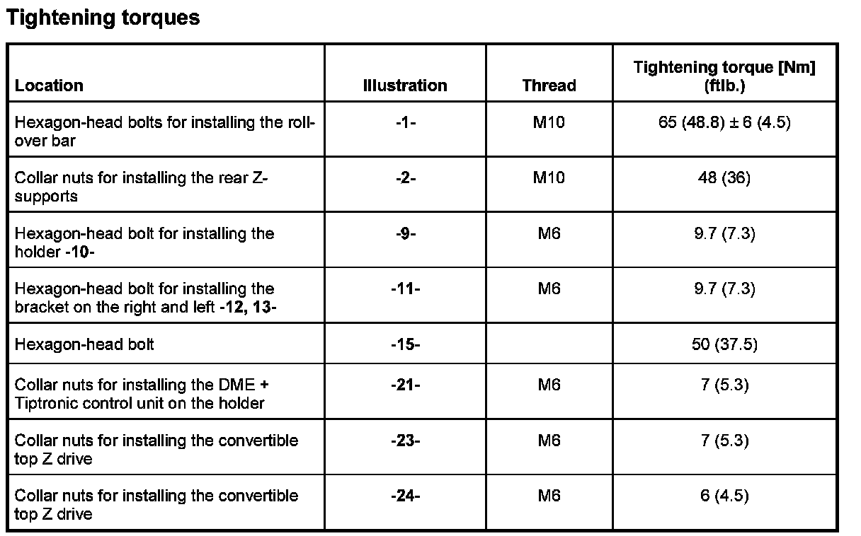 - The frame for the roll-over protection system as of 2002 differs from the frame for the roll-over protection system up to 2001 by their different component arrangement of DME + Tiptronic control unit, relay carrier, convertible top Z drive, and Z-supports behind the frame -3-.