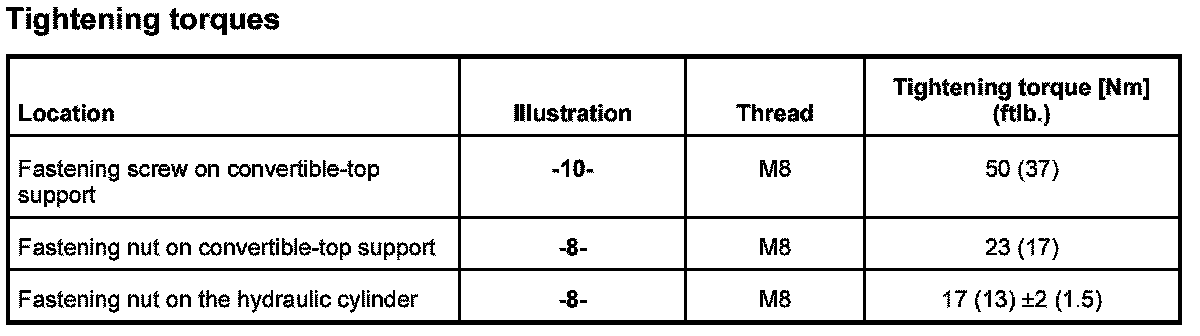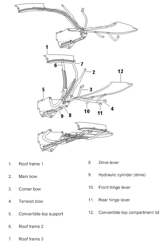 CAUTION: Damage to or destruction of the tension bow seal. During the procedure 'convertible top in service position'