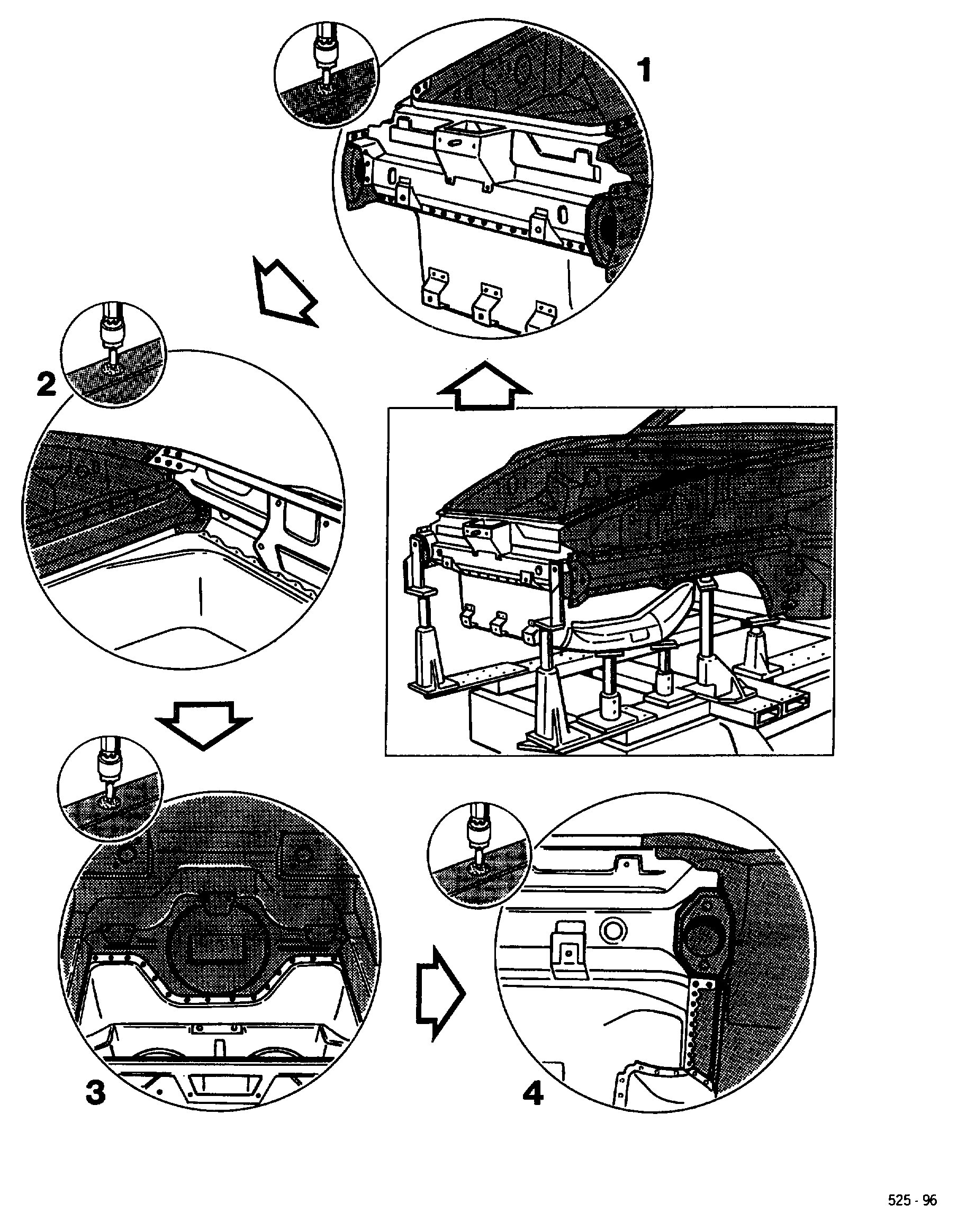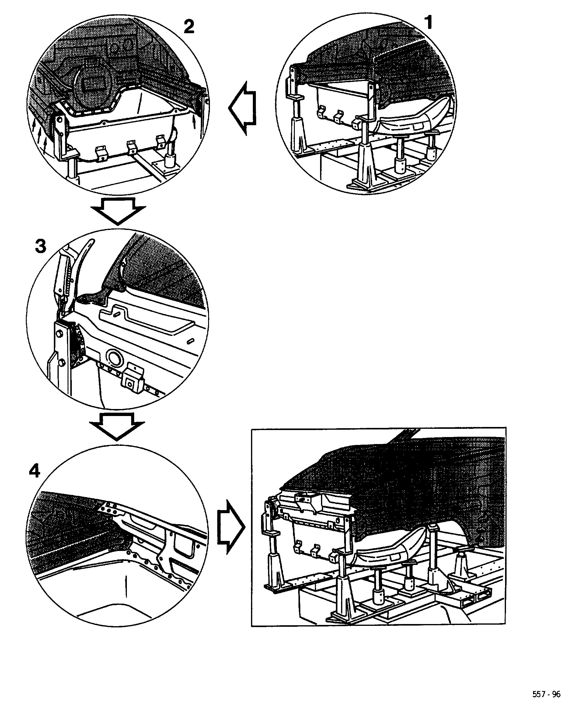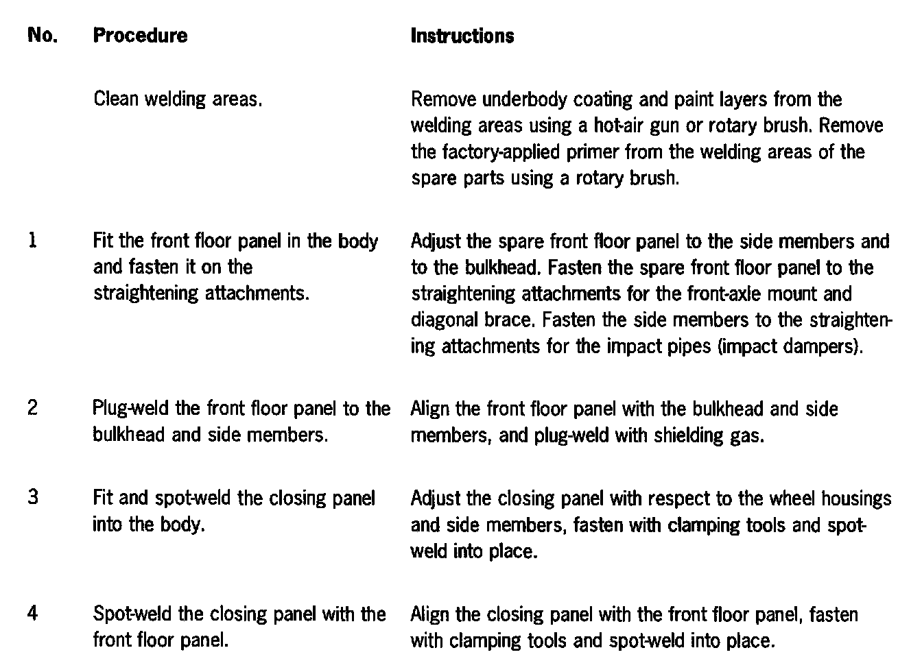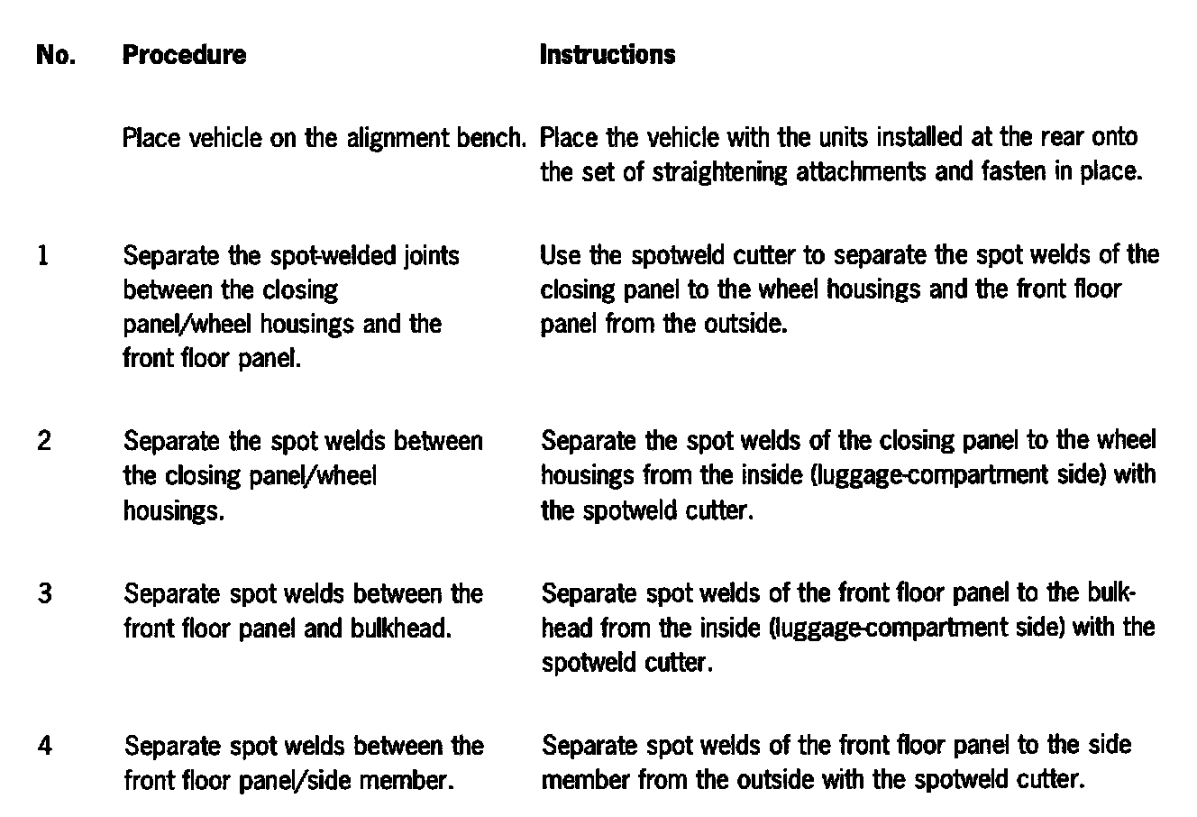 All straightening work on the body in this area must have been completed before the damaged parts are removed.
