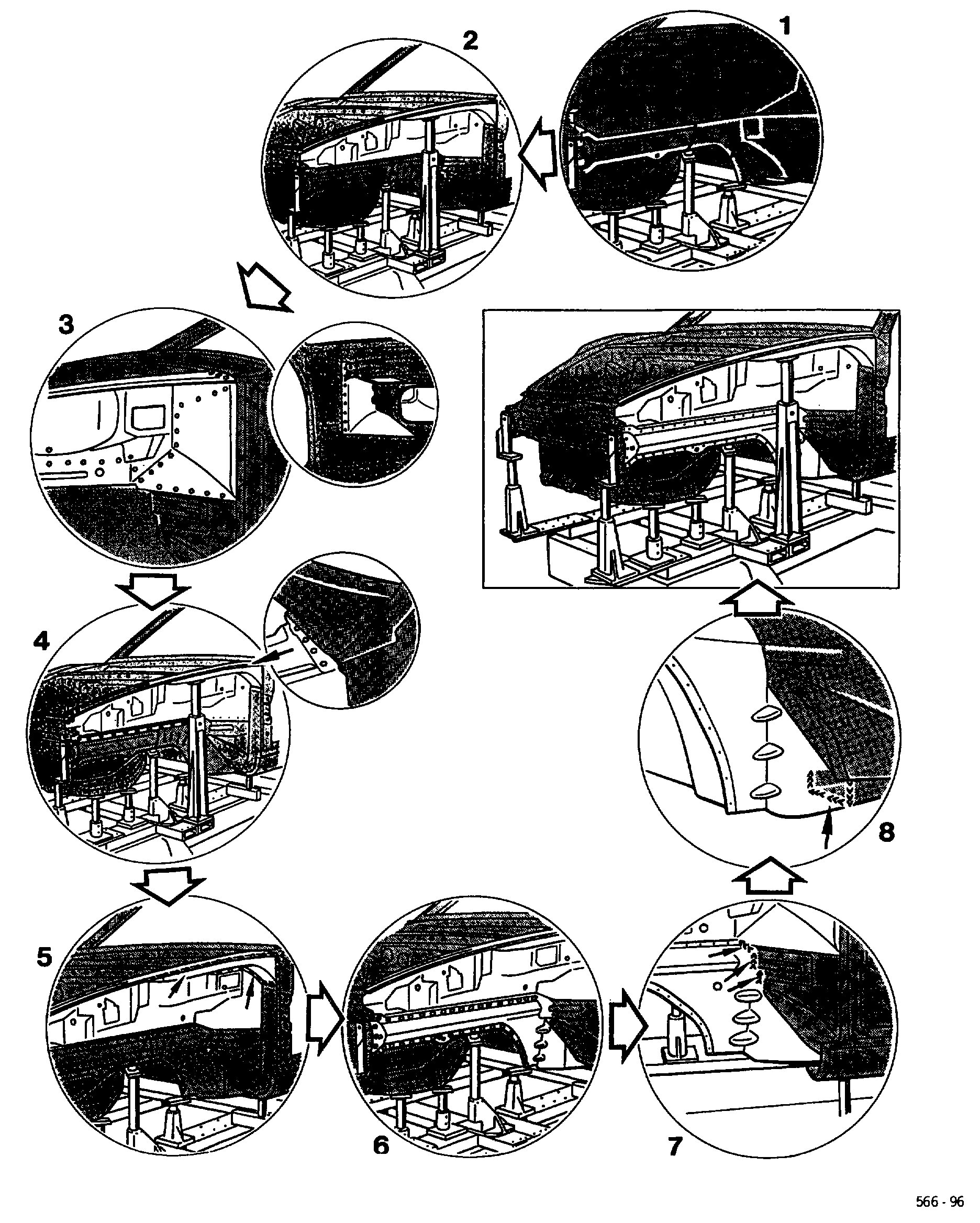 All straightening work on this area of the body must have been completed before the damaged parts are removed!