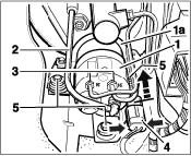 - Undo the three plastic fastening nuts -5- and remove the booster pump -1- with the holder -1a-.