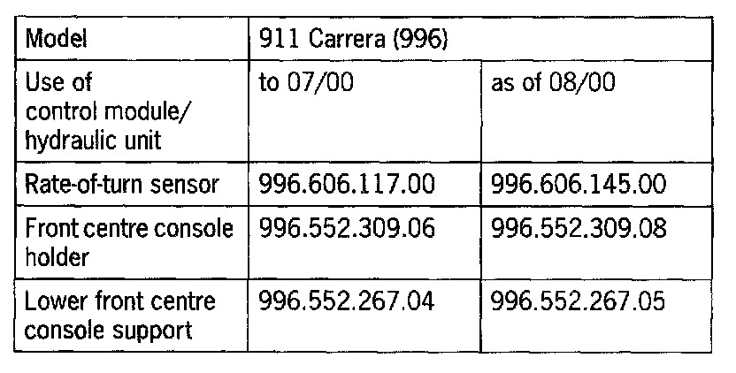 If the rate-of-turn sensor with part No. 996.606.147.00 is determined to be faulty, install the new rate-of-turn sensor with part No. 996.606.145.00.