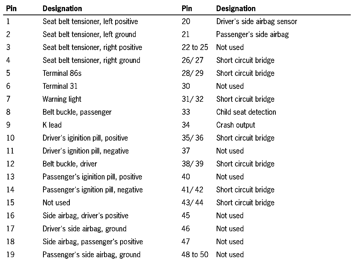 Wiring Harness Plugs For Airbag Triggering Unit (Part 2):
