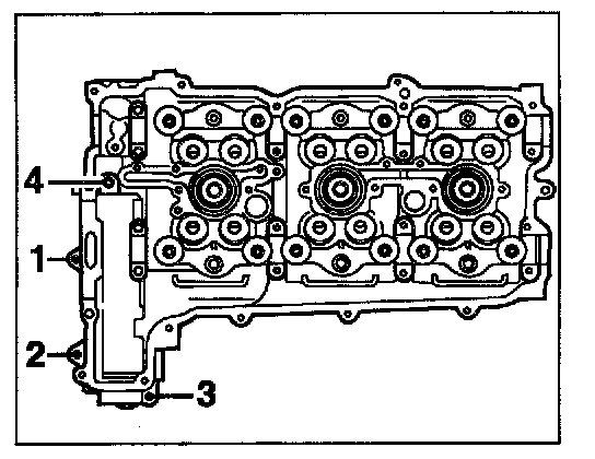 The installation of cylinder head side 4 - 6 is carried out in the same way as the assembly sequence of side 1 - 3 with the following exception: