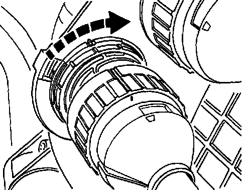 10. Insert servo container. Remove plug, insert container into the flange, turn bayonet lock clockwise -arrow- until the markings of the flange and the container are aligned.