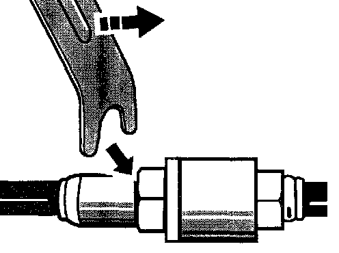 4. Check proper engagement of the plug coupling with special tool Test tool 9623. Insert special tool into the groove (-arrow-) and check that the plug is seated correctly in the coupling by applying slight pressure. The plug must not slide out.