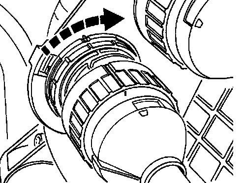 10. Insert servo container. Remove plug, insert container into the flange, turn bayonet lock clockwise -arrow- until the markings of the flange and the container are aligned.