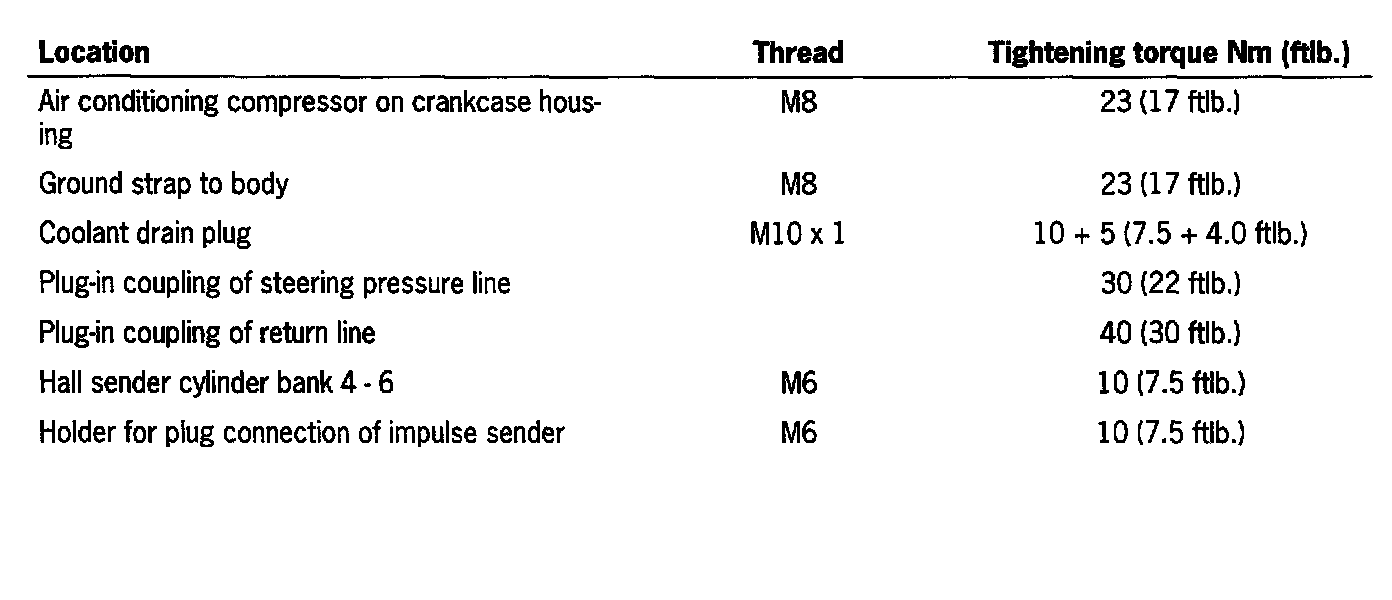 Tightening torques - Removing and installing engine