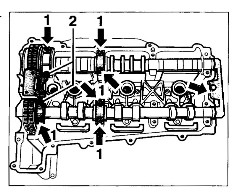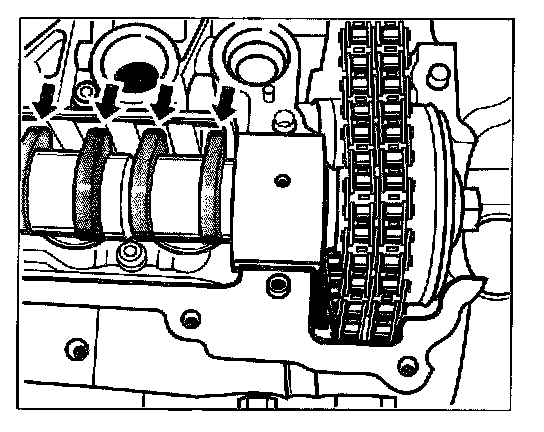 4. Oil the bearing surfaces of the camshafts with new engine oil.