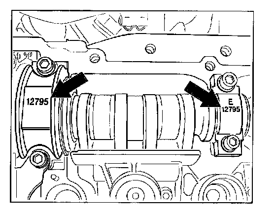 - Designation of inlet camshaft bearing: thrust bearing: E and pairing number on cylinder head/cylinder head cover, bearing cover of the bearing sleeve: only pairing number.