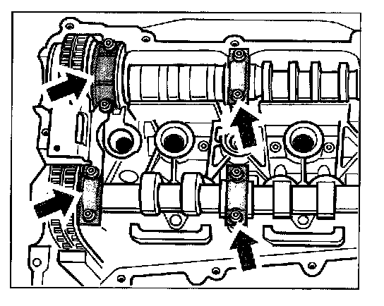 - Do not interchange the thrust bearings of the inlet and exhaust camshafts during assembly. Observe the identification (Figure shows inlet camshaft bearings).