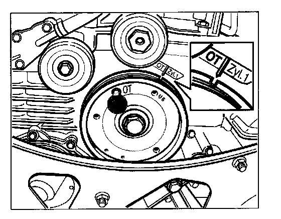 NOTE: Move the engine at the belt pulley of the crankshaft to the TDC marking without fail.