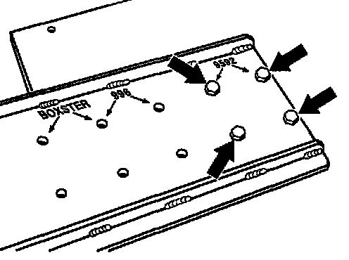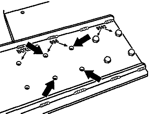 3. Drill through the countersunk points on the retainer plate -arrows- with a steel drill bit sized 6.8 mm and then cut an M8 thread. During removal of the engine, fit the retainer plate 9592 on the take-up points on the underside of the engine.