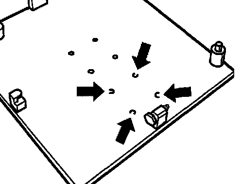 2. Countersink the retainer plate at the designated bores for 996 -arrows- with a 9 mm drill bit. The support plate serves as the drilling template. Then unscrew the 4 screws again and lay the support plate to one side.