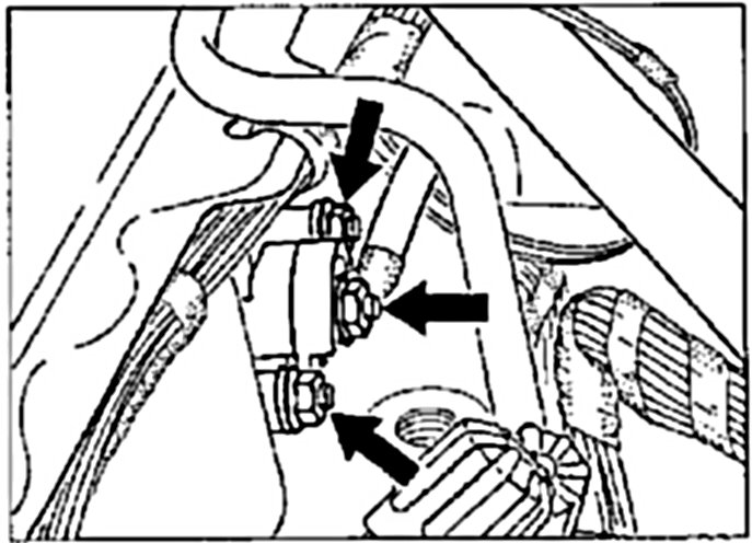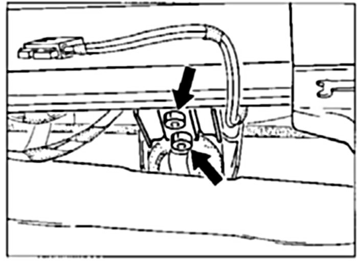 16. Clamp shut both heater hoses in front of the heat exchanger with a commercially available hose clamp. Disconnect the heating hoses on the heat exchanger and plug the connections.
