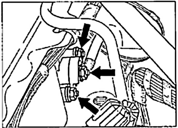 18. Clamp shut both heater hoses in front of the heat exchanger with a commercially available hose clamp. Disconnect the heating hoses on the heat exchanger and plug the connections.