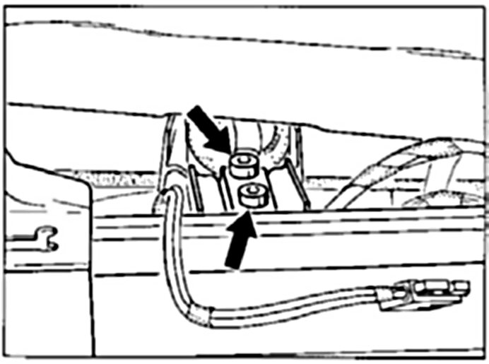 17. Loosen battery positive connection at the current distributor and current distributor at the firewall cover.