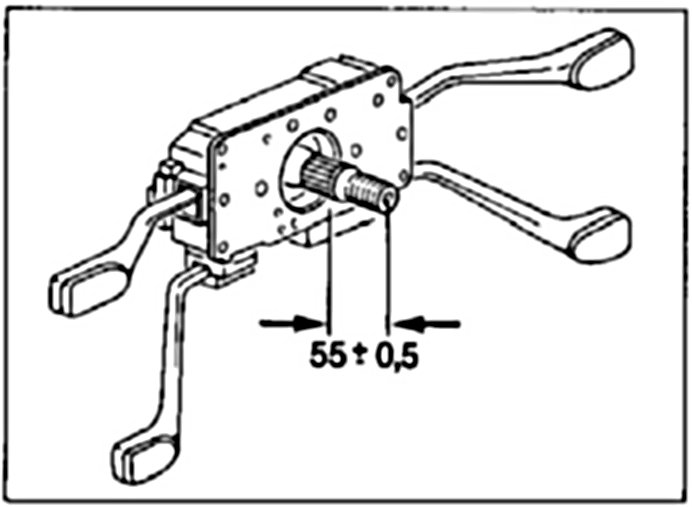 3. Set the steering column switch: Measure with a depth gauge between end of steering shaft and steering-column switch cover plate. Adjustment dimension 55 ± 0.5 mm