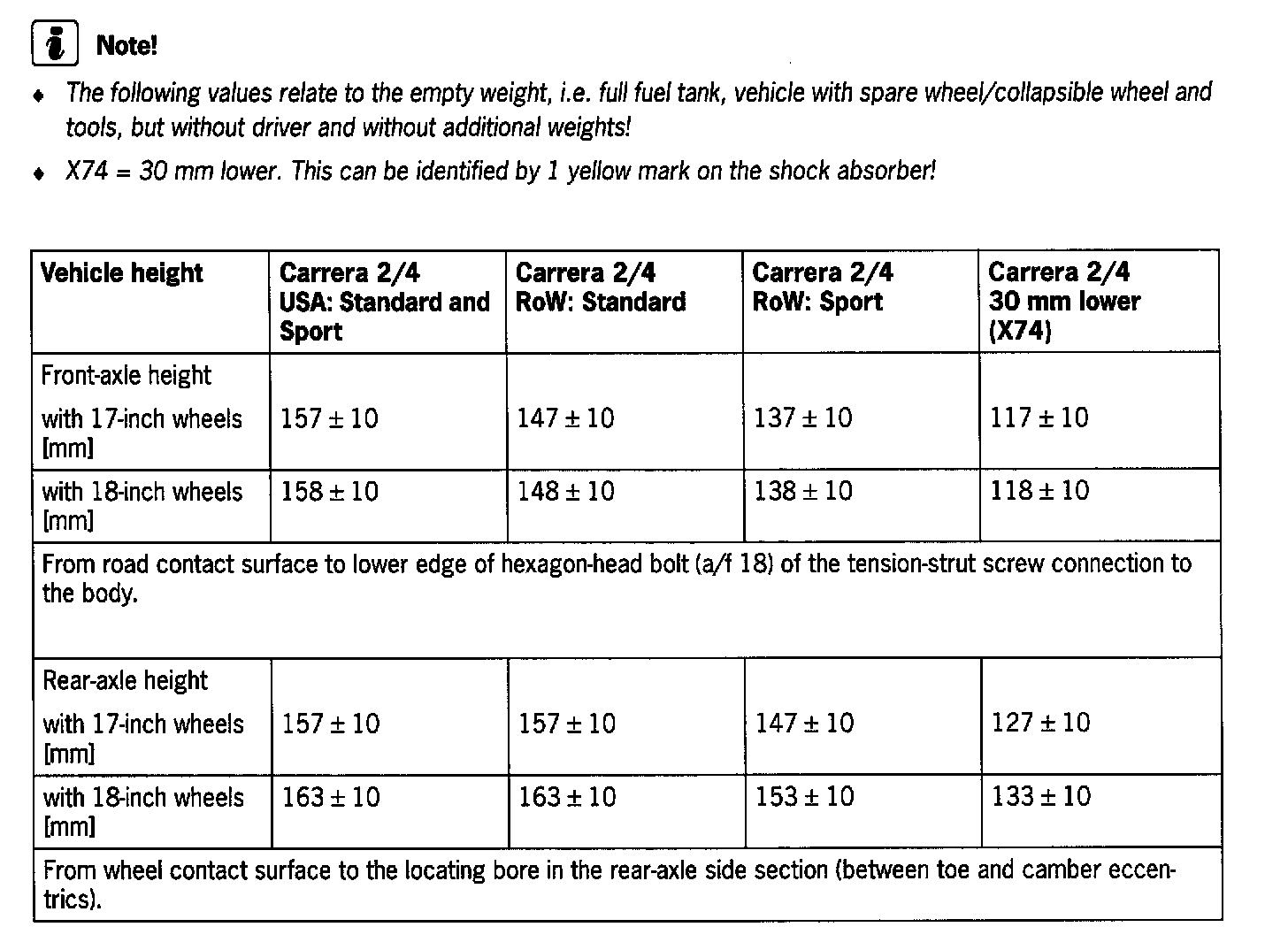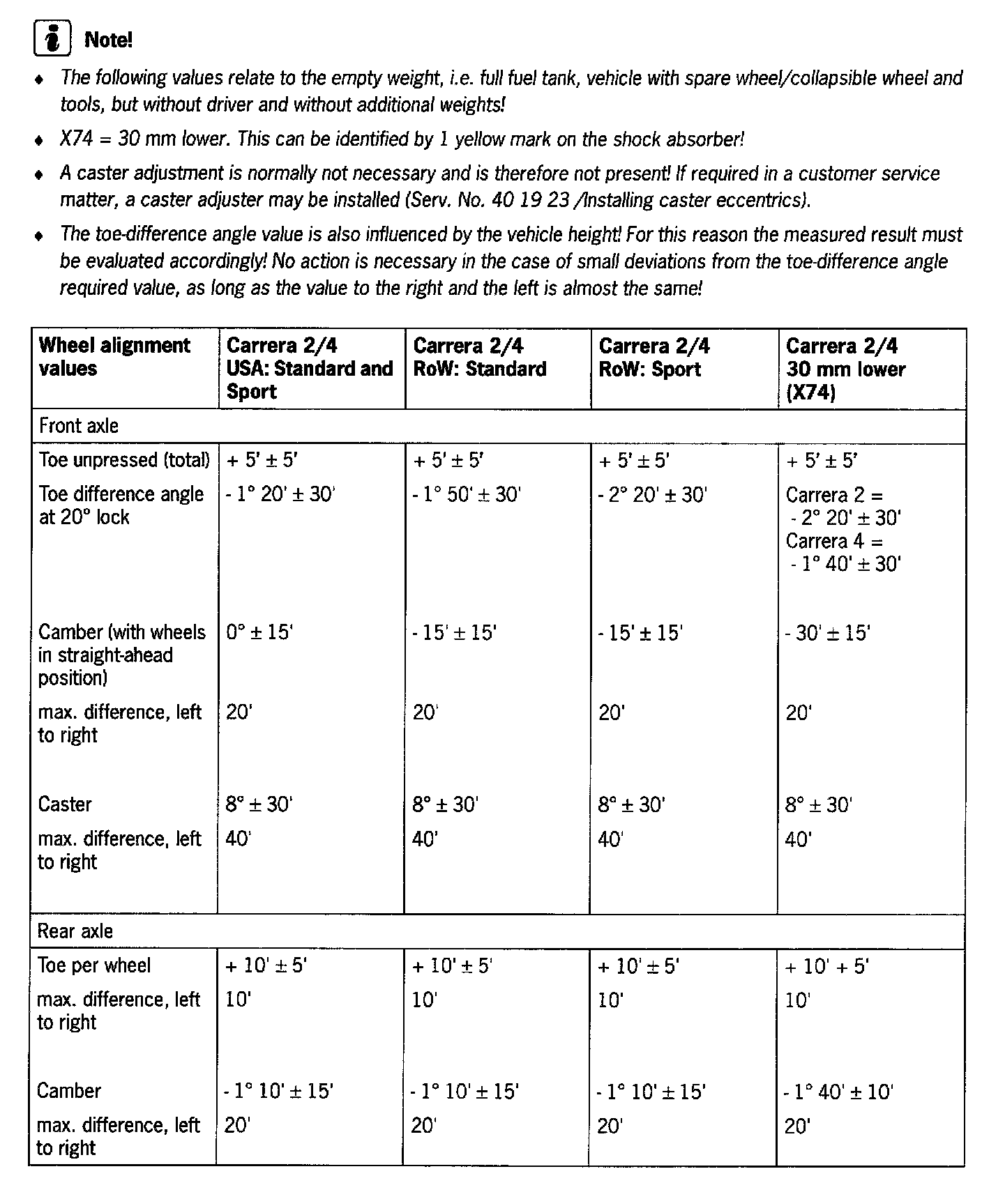 Adjusting values for suspension alignment - 911 Carrera