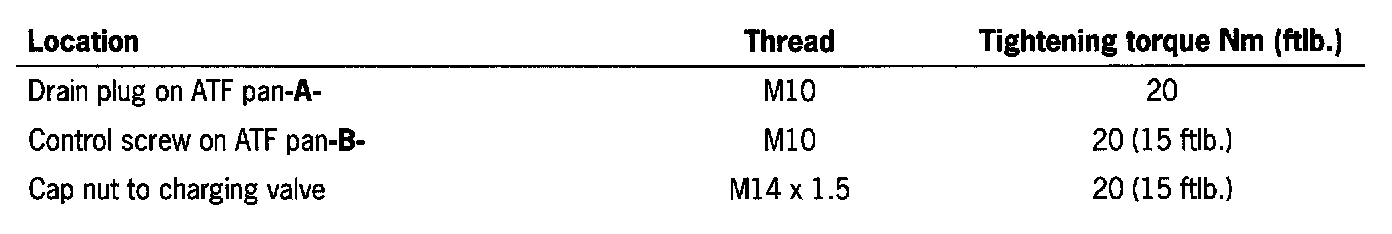 NOTE: All instructions and test conditions for "Checking and topping up ATF fluid" must be observed for further work steps, refer to "Checking and topping up ATF (as of model year 2002)"
