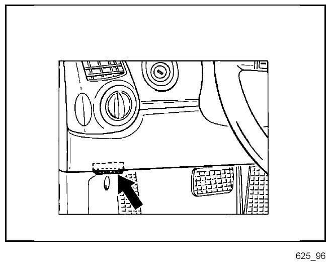 The diagnostic socket (arrow) to which the Porsche System Tester 2 is connected is located in the driver's footwell (left-hand drive vehicles) or passenger's footwell (right-hand drive vehicles) near the fuse box.
