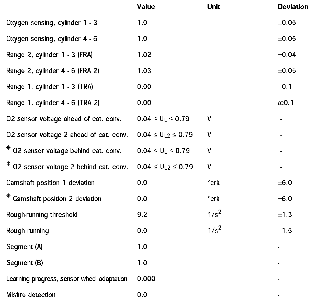 NOTE: The stated values are the result of measurements of vehicles with different mileages and in perfect condition. Different values can result from diagnosis in the workshop because of mileage and environmental influence. For DME diagnosis, it is important to look at several values simultaneously and in a collective group during troubleshooting.