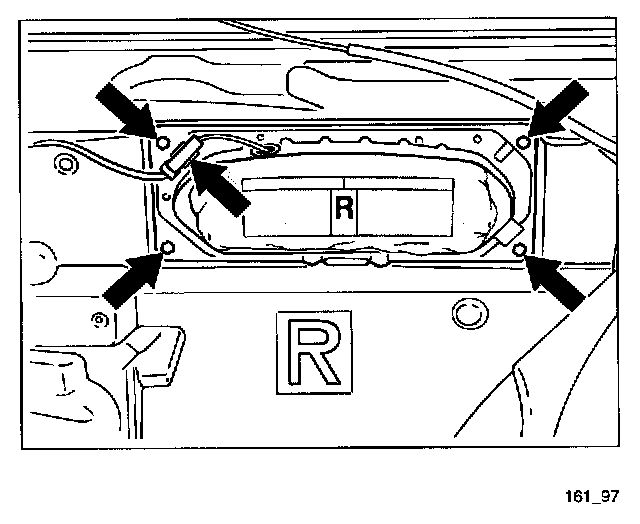 2. Install airbag unit with the inscription "R" in the right-hand door and fasten. Engage electrical plug connection.